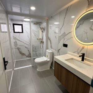 Pre-installed electrical, plumbing, flooring, ceiling, and fixtures