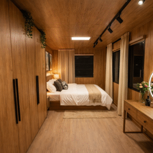 When expanded, it offers the space of two 20FT modules, allowing flexible layouts for living, sleeping, or workspace needs. The home is factory-built and delivered fully prefabricated with flooring, insulation, electrical wiring, plumbing, windows, and ceiling finishes.Once installed on an approved foundation and connected to utilities, PORCH OAKLINE expands into a complete, ready-to-use home within hours.